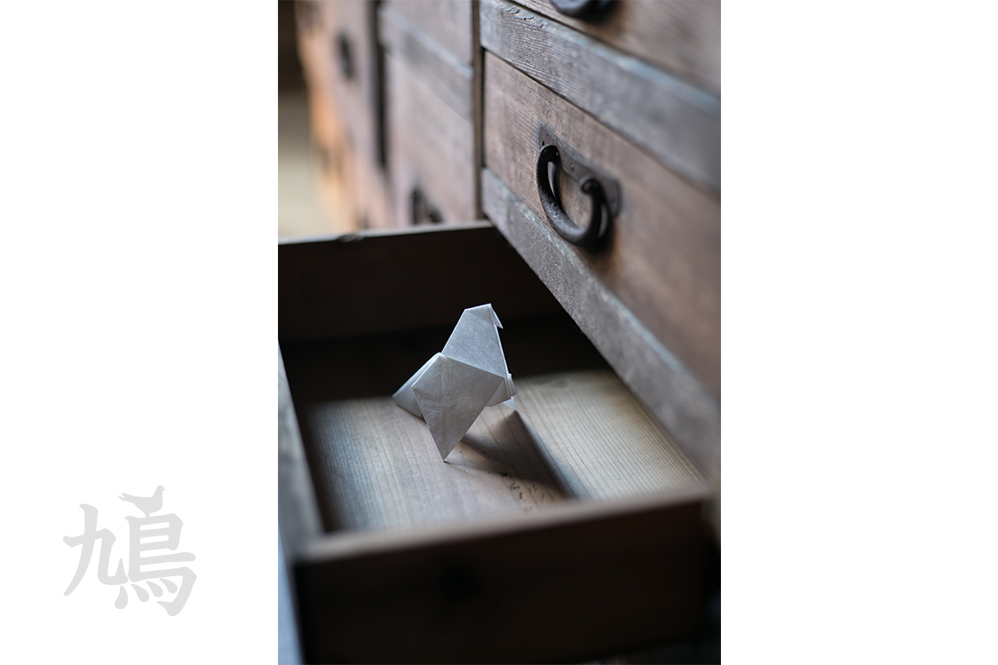 鳩のカタチに折られています