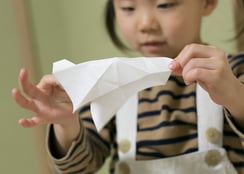 形状記憶不織布で折られた鳩で、鳩の頭と尻尾を左右に引っ張ると、折り紙のように平らに広げることが出来ます。手を離すと自動で折りたたまれ、元の鳩のカタチに戻ります。折りたたまれ見えなくなる部分にメッセージを書き込んで使用します。環境問題にも対応しており、お子様からお年寄りまで幅広くご利用いただける商品です。